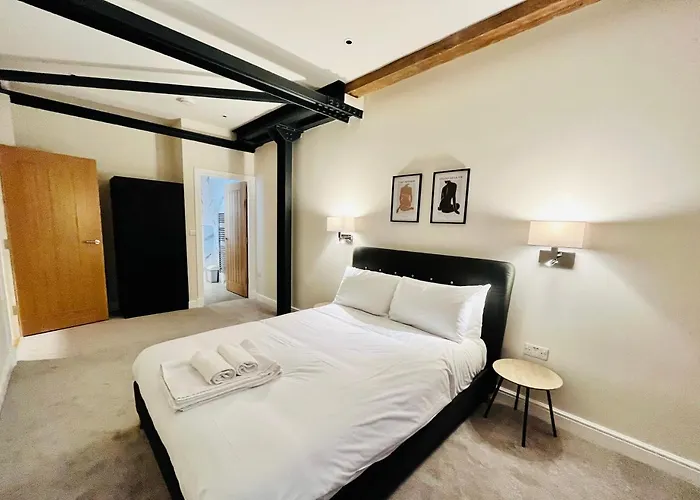 L'appartamento offre una cucina completamente attrezzata con un microonde, un frigo e utensili da cucina per gli ospiti. Gli ospiti possono gustare la cucina asiatica al ristorante Vnam, situato a circa 2 km. La struttura si trova a pochi minuti di auto dalla fermata dell'autobus più vicina, Shudehill Interchange.